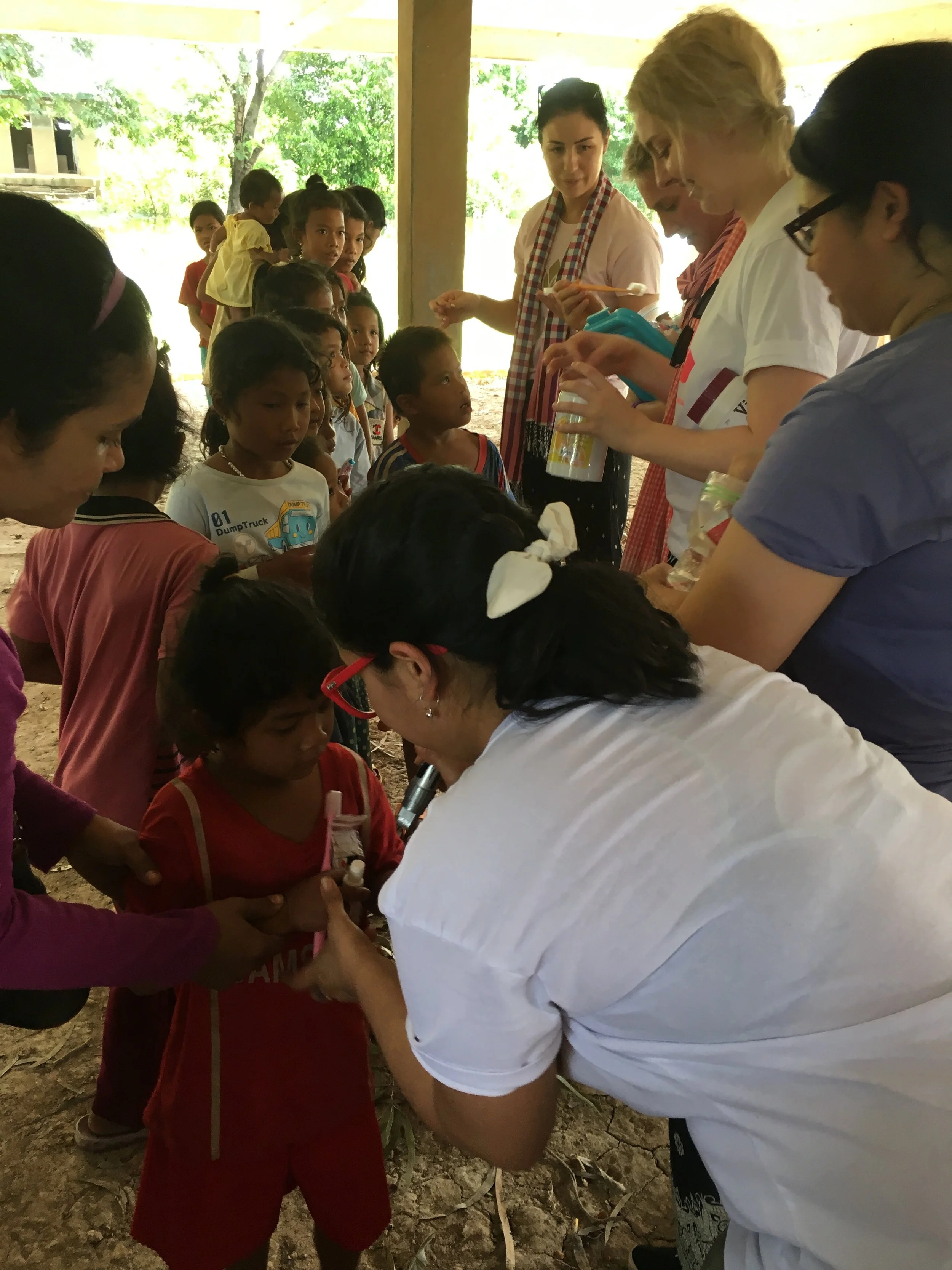 A helping hand from one of the locals enabled us to take our supplies to the local school on foot (due to the road condition this was a must) and after 3 long hours of travelling we arrived to set up our first clinic. For half the team this was their first clinic so with Caz and Di on pharmacy duty, Heidi rotated between the new girls with Rachael and Gab providing direction to help them find their feet. The new girls found their rhythm quickly and were soon buzzing round helping and connecting with the locals. After a very quick stop for a local lunch of broth and rice the team continued.