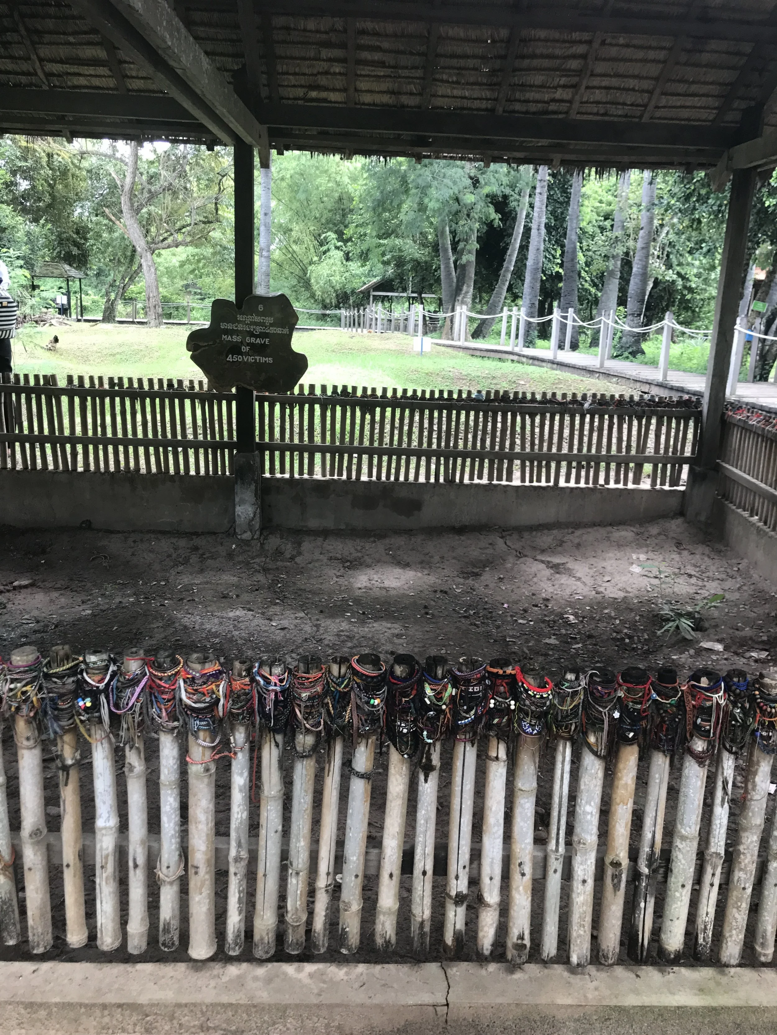 There were also sticks sticking up out of the water near the river bank. Sok Eng explained what this was. Apparently, this is a fishing technique. This is complicated but I'll do my best to explain it. The sticks are placed in a circle in the river with fish feed and cow skins placed at the centre in a cage-like structure made of branches where in the fish can enter. When it is time to retrieve the fish, a net is laid around the sticks and three or four labourers will get into the centre and remove the cage-like structure. They will place the branches next to the sticks to use to catch fish next time. One of the labourers will stay in the boat and the man at the centre of the sticks (in the river) will put mud on the net to keep the net on the bottom of the river and to keep it closed. The other men who have taken out the cage-like structure come onto the boat with one in the middle and two on the ends of the boat. The men on the ends will hold the net high so that fish cannot escape. The man in the middle will slowly pull out the net using a twisting technique so that fish cannot escape as the net is being pulled in. The man in the water will continue to hold it closed at the bottom. They continue this process until the bottom edge has been pulled out and the fish are contained within the net and can't escape. The fish are then scooped into another boat. The fish are caught using this process every 3-4 months. A new structure is put into place next to where the old structure was, then returned to the original place in 3-4 months time.